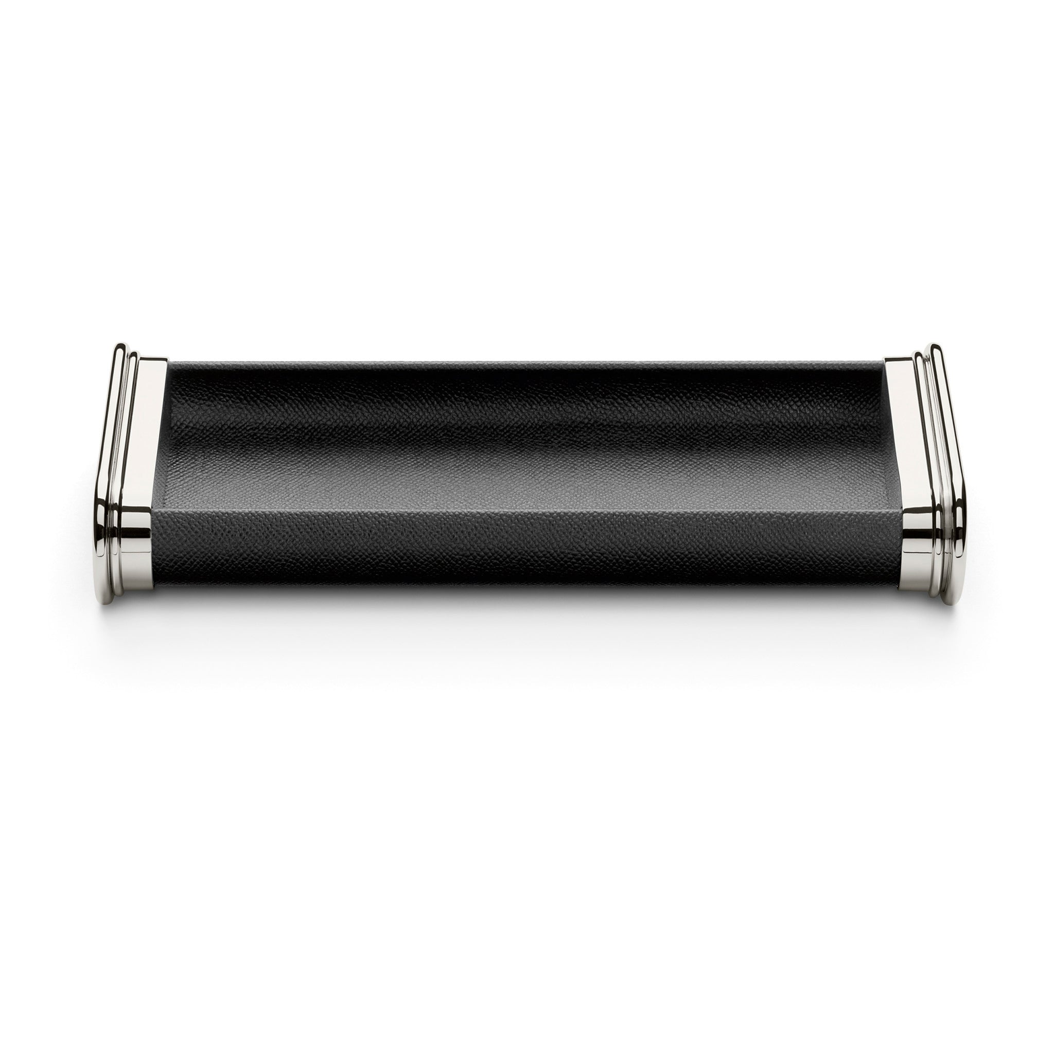 Epsom pen tray made with selected Italian calfskin in grained black color. Highly polished metal parts. Handmade in Germany.