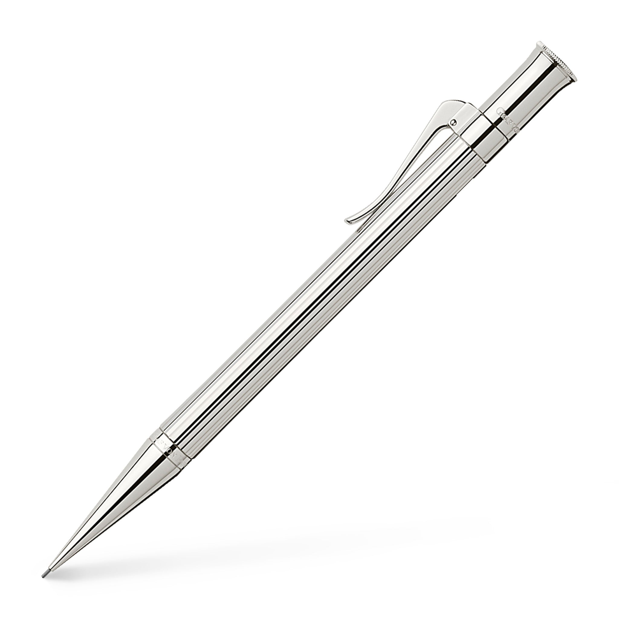 Classic mechanical pencil. Platinum-plated barrel. Break resistant 0.7 mm leads of hardness B. Reservoir for spare leads. Replaceable white eraser under the end cap. Packaged in wooden gift box.