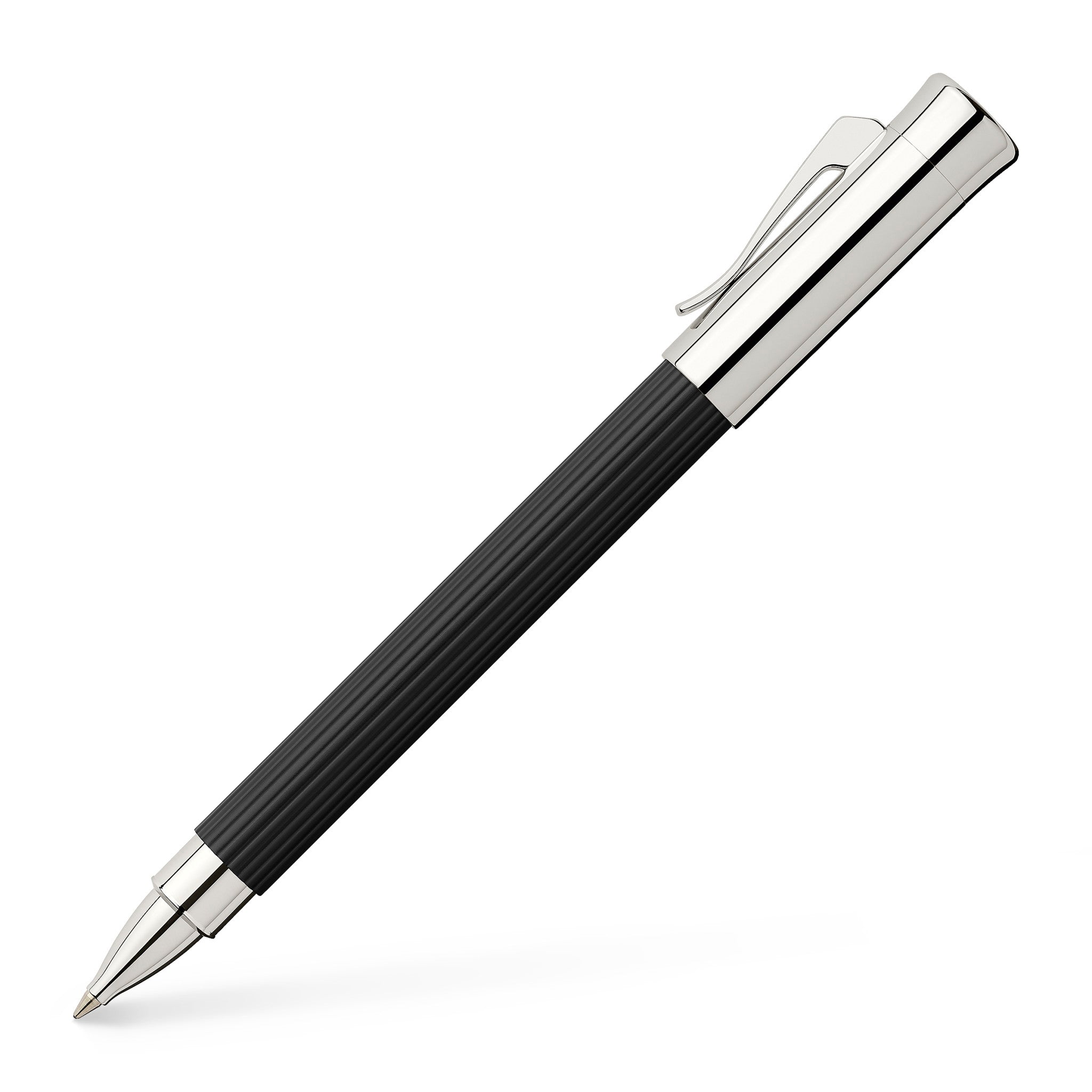 Tamitio rollerball. Finely fluted barrel made of metal lacquered in black in several elaborate working steps. Highly-polished metal fittings. Smooth-running precision point. Chamoise-colored gift box.